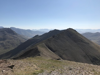 En primer plano, la Tuca de Urmella, y detrás, un montón de cimas y sierras.