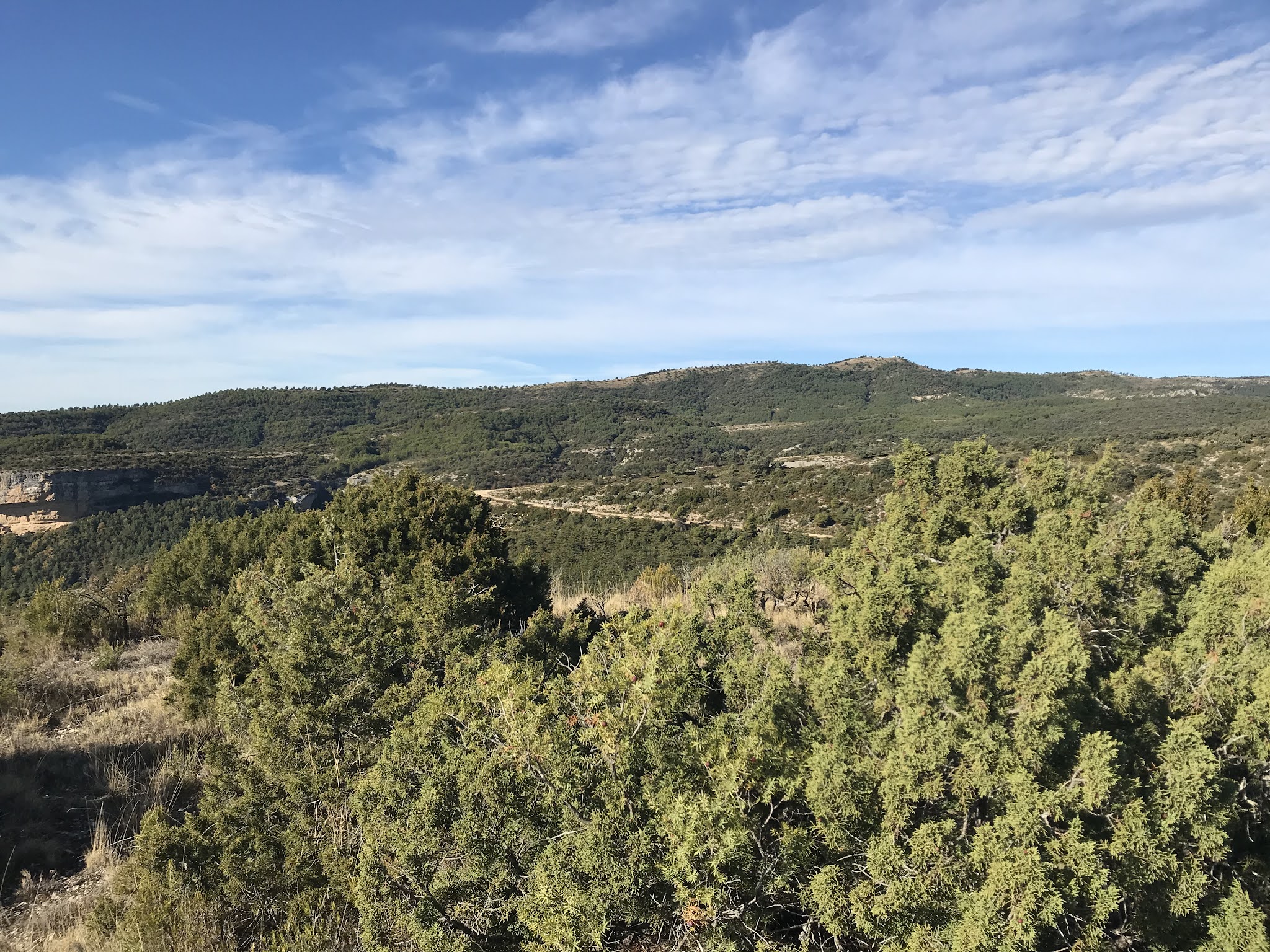 Poco a poco, ascendemos por bosques de pino repoblado suelto y alguna sabina y enseguida...